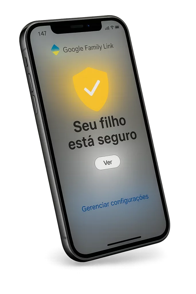 ⚠️ Atenção: embora funcione em iPhones, o celular do seu filho precisa ser Android (Samsung, Motorola, Xiaomi, Asus, LG, Realme e outros) para liberar 100% das funcionalidades. Já o celular do pai ou da mãe pode ser qualquer um — inclusive iPhone.